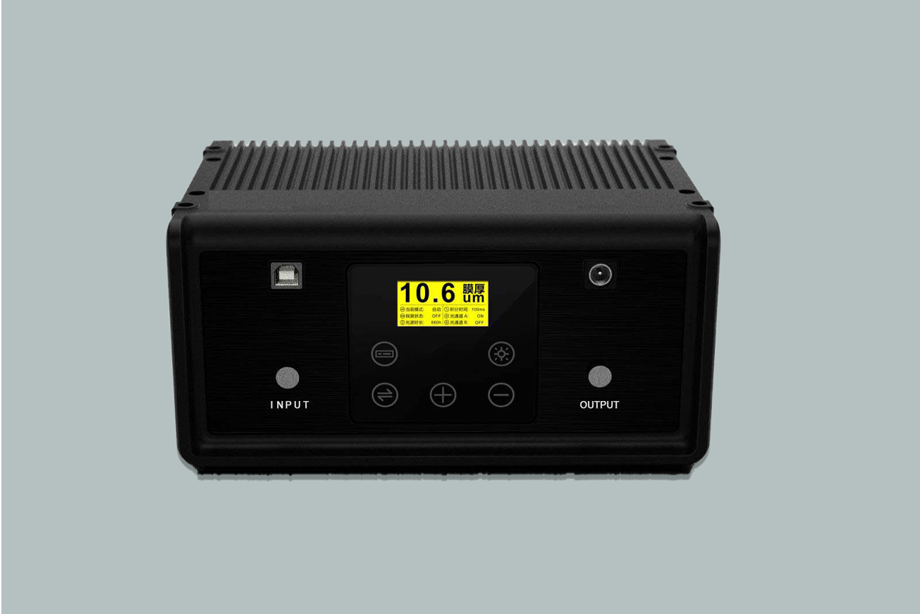 该产品由膜厚仪主机、上位机 PC 软件、光纤组成。用一束准单色平行光照射多层薄膜, 光波会在第 1 到 n 层之间来回多次折射、反射进而形成多个相干光束。这些相干光束进行相 干叠加后,携带多层薄膜的相干信号并沿原路返回。不同波长的准单色光照射薄膜后,携带 的干涉信号不一样。如果用一束含有多种波长的准单色光照射薄膜后,提取各个波段的干涉 信号,通过 OCD 自主知识产权的算法进行反演计算,便可获得每一层薄膜材料...