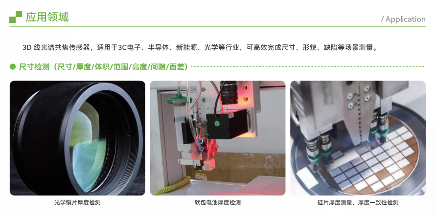 全新结构设计 D系列采用全新结构设计,产品性能提高同时, 体积大大减小,从而满足了更多安装空间限制的场景 高效成本 采用多功能小体积设计,仅需一个控制就可以最 多支持8台测量探头同步工作,大大节约使用和空间成本 极高采样频率 D系列最高可支持8通道同步采样 通道之间的同步时间误差小于1ns 亚微米级分辨率 极高分辨率可以轻松应对各种物体 表面材质,即使是透明和漫反射面,也能准确分辨表面信息 -